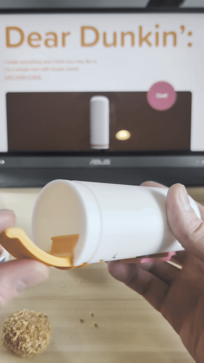 Further iterating and tweaking allowed me to consolidate parts and remove three other components from the donut hole-der. Nine iterations later and we have a final prototype that is about 85% there. I still want to tweak the form and a few components before I begin the final step - designing it for injection molding and mass production.